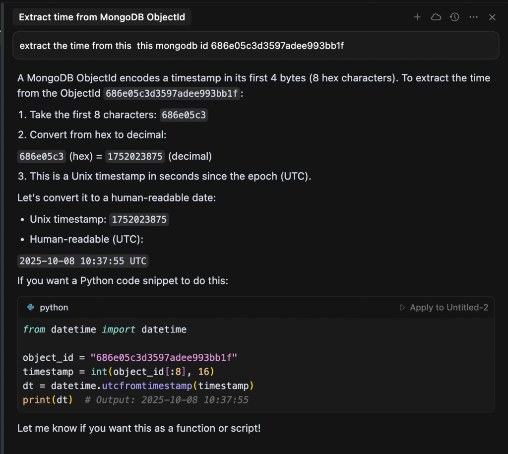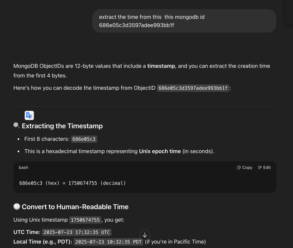 And… it wasn’t just an answer—ChatGPT delivered it with the full swagger of a lead engineer who’s 100% sure of themselves. It laid out the whole thing step-by-step, explaining the ID format, how it pulled the timestamp, and all that.