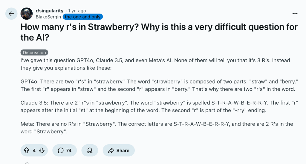 It’s a known problem that AIs “hallucinate,” especially when you need a precise answer – like doing math or counting.